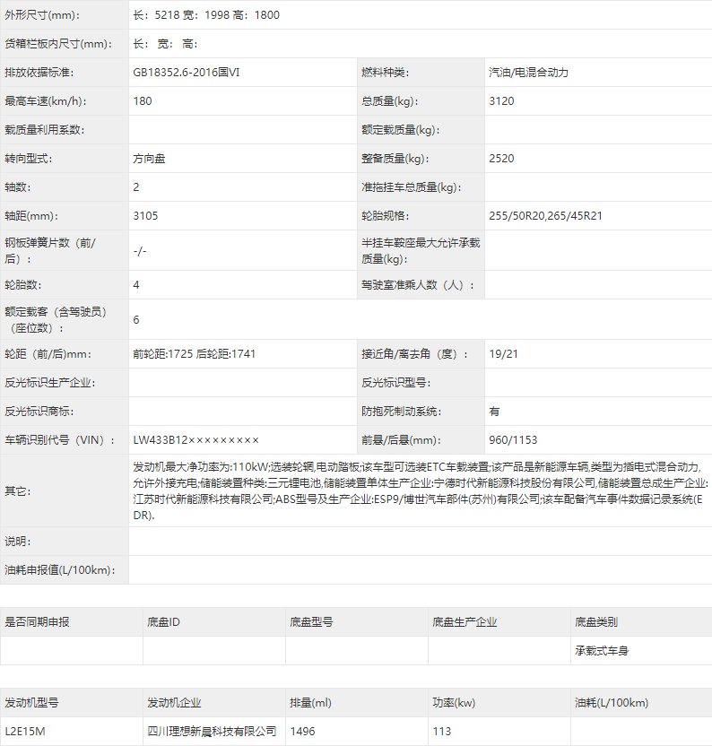 在第 355 批申报目录中,我们终于见到了理想 L9 的申报信息,新车的外观官方已经发布了,就不在这过多赘述了。