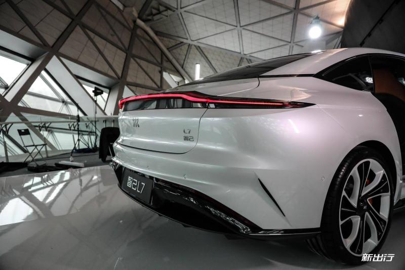 车尾部分,L7 采用了悬浮式的尾翼以及贯穿式的尾灯设计,并且尾灯一直延伸至车身侧面,整体与前脸和侧身的动感造型相呼应。同时,L7 的 ISC 交互尾灯也能够在日常用车时带来不一样的人车交互体验。