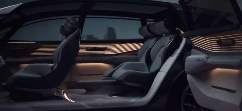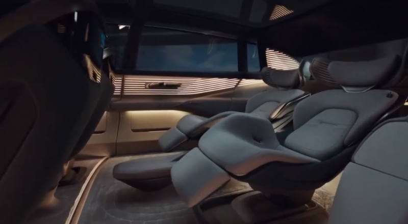 由于是概念车,所以内饰并没有采用了传统的设计风格,从下图能看到,新车采用了隐藏式的方向盘、电门和刹车踏板的设计,并且在前方还有一块环绕的屏幕。