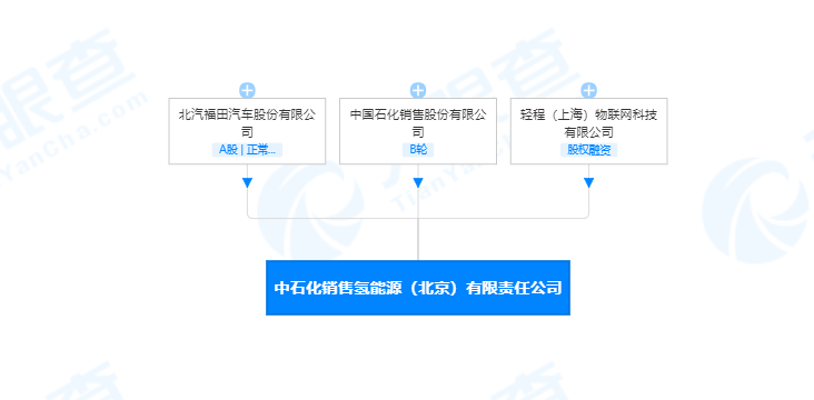 由股权穿透图可知,中石化销售公司由三大股东共同持股,分别为北汽福田汽车股份有限公司(以下简称“福田汽车”)、中国石化销售股份有限公司(以下简称“中国石化”)、轻程(上海)物联网科技有限公司(以下简称“轻程物联”)。