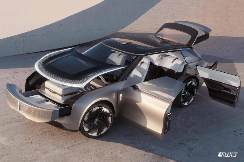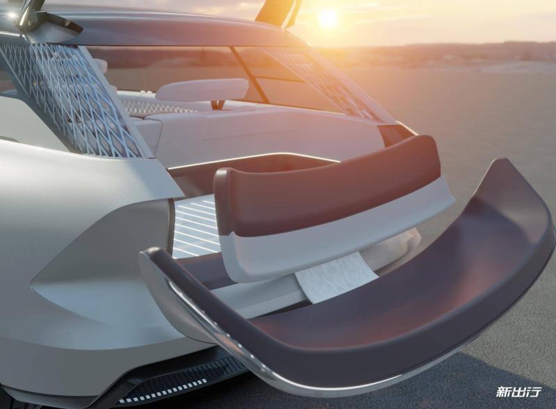 车顶线条则斜向后延伸,概念车侧面没有配备门把手或者传统的外后视镜,让车辆整体看上去更具科技感、整体感。