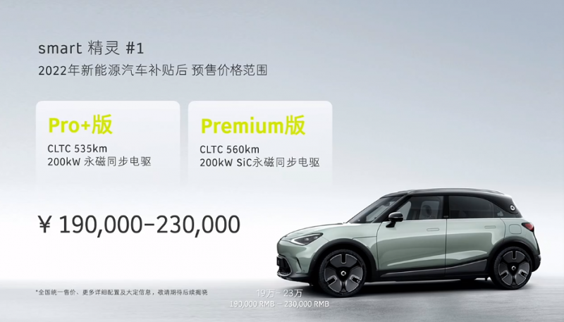 补贴后预售价 19-23 万元 smart 精灵 #1 正式开启预定