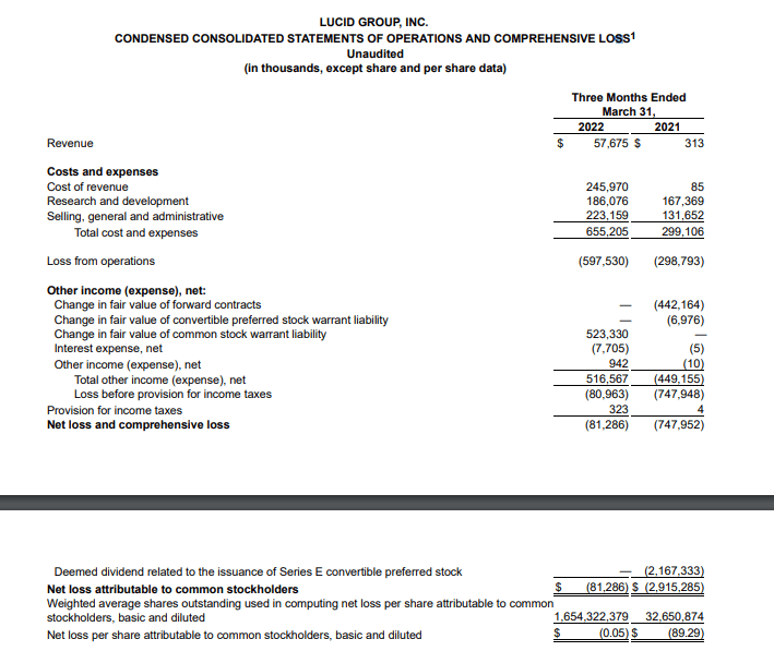 目前,根据外媒报道,美国电动汽车制造商 Lucid Motors 公布了其 2022 年第一季度的数据。根据数据显示,2022 年一季度该公司共交付了 360 辆汽车,一季度营营收 5767.5 万美元(约合人民币 3.85 亿元),去年同期为 31.3 万美元(约合人民币 207 万元)。