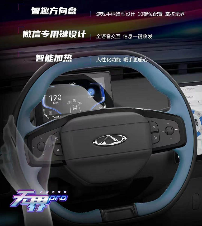 近日,我们从相关渠道获取了一组奇瑞旗下微型车——无界 Pro 的全新官图。具体来看,新车内饰采用了双幅式多功能方向盘的设计,该方向盘集成了微信专用键,并配置了智能加热功能。