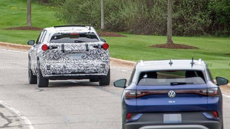 侧面来看,雪佛兰开拓者 EV 拥有较为低矮的车身造型,其“四轮四角”的设计或将为新车带来客观的轴距。有意思的是,测试中有一辆大众 ID.4 现身,暗示新车将与大众 ID.4 在某些功能上进行对标。