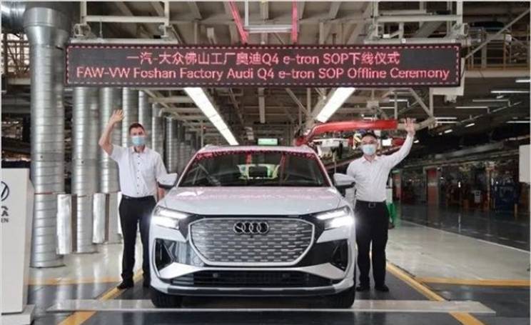 从官方获悉,奥迪 Q4 e-tron SOP 投产暨首台车下线亮相仪式在一汽-大众佛山分公司总装车间举行。值得一提的是,在 5 月 20 日奥迪 Q4 e-tron 先享版车型已正式上市,指导价 33.70-38.25 万元,并有四款车型开启预售,预售价格区间 30.00-38.00 万元。