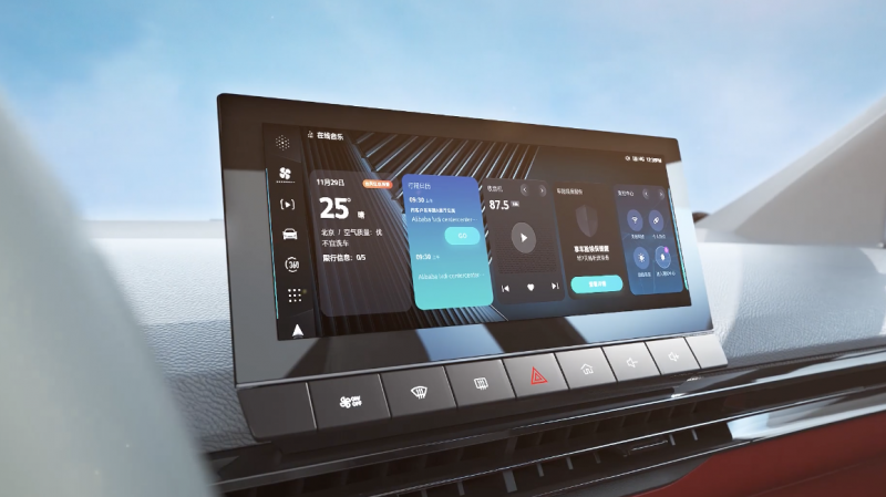 根据官图来看, 新车的内饰设计采用了十分具有科技感、简约的风格。在座舱方面,新车搭载了全液晶仪表盘以及悬浮式的中控大屏,大小双屏的设计十分简单直接,不过屏幕的大黑边也让整个座舱的质感有落差感。