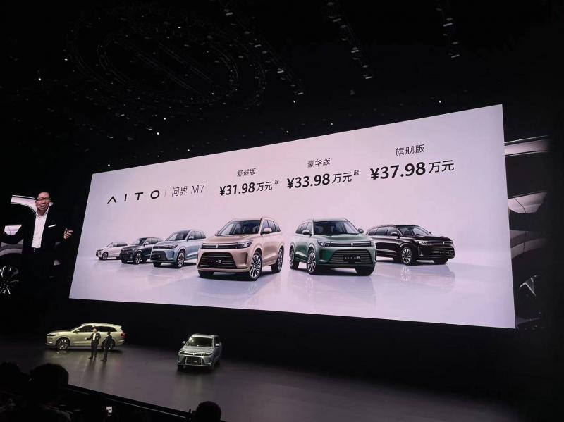 7 月 4 日,AITO 的第二款车型问界 M7 正式上市,新车售价区间为 31.98-37.98 万元,共有三款车型,其中舒适版 31.98 万元、豪华版 33.98 万元、旗舰版 37.98 万元。