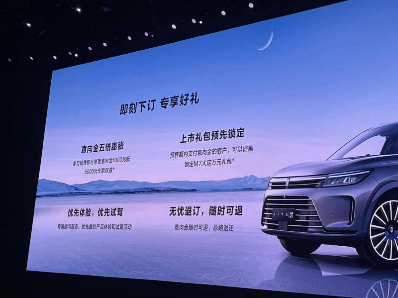 - 上市礼包预先锁定:预售期内支付意向金用户,可提前锁定 M7 大定万元礼包