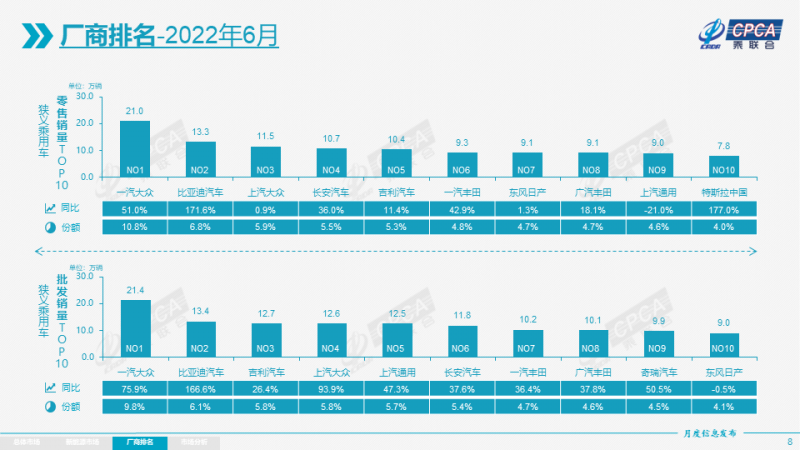 6 月新能源车国内零售渗透率 27.4%,较去年同期提升 12.8%。6 月自主品牌中的新能源车渗透率 50.1%;豪华车中的新能源车渗透率 28.0%;而主流合资品牌中的新能源车渗透率仅有 4.5%。