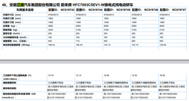 在工信部第五十六批免征购置税目录中,蔚来 ET5 的所有续航信息正式对外公布,共有四种续航里程的车型,分别是 640km、710km、500km 和 560km。