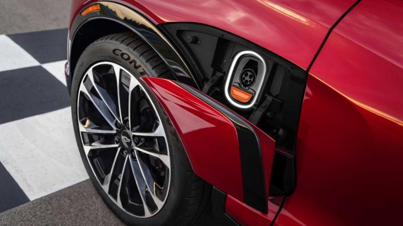 充电接口在前翼子板处,开启方式看上去十分酷炫。 根据车型配置不同,新车外饰部分也会有一定区分,例如 LT 车型为单色外观,标配 19 英寸轮圈。RS 车型将具有黑色格栅和车身装饰件,配备 21 英寸轮圈。SS 车型配备黑色车顶和 22 英寸轮圈,中网上还可以看到 SS 高性能标识。