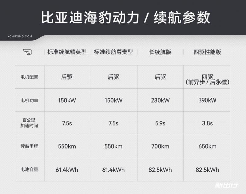 • 长续航车型换装了功率更大的   230kW 后置永磁同步电机、电池容量 82.5kWh、续航 700km、百公里加速时间 5.9s ;