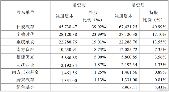 公告披露,阿维塔科技拟新增注册资本 4.72 亿元,由 11.72 亿元增至 16.45 亿元。长安汽车拟增资 11.69 亿元,增资完成后,长安汽车持股比例由 39.02% 增加到 40.99%。