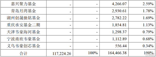 公告显示,六家投资方分别为国家绿色发展基金股份有限公司、嘉兴聚力展业陆号股权投资合伙企业、青岛月湾智网产业投资基金合伙企业、湖州创晟驰铭股权投资合伙企业、重庆承安二号私募股权投资基金合伙企业、以及天津韦豪海河一期股权投资合伙企业、宁波甬欣韦豪一期半导体产业投资合伙企业和义乌韦豪创芯一期股权投资合伙企业的联合体。