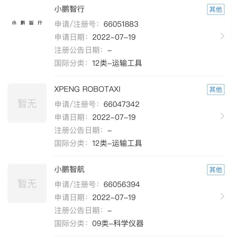 近日,从相关渠道获悉,小鹏汽车注册了“小鹏智行”、“XPENG ROBOTAXI”、“小鹏智航”等多个商标。从新商标的名字我们不难看出,或与小鹏董事长何小鹏早前表述的计划年内推出自动驾驶出租车业务有关。