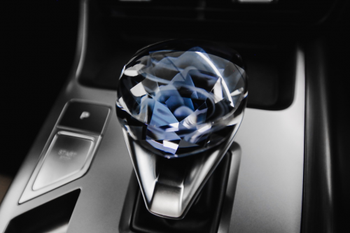 水晶球头——运用首饰设计中的多位面精细切割手法,配合戒托型的底座,将首饰设计的精雕与汽车设计精致相结合,画龙点睛。