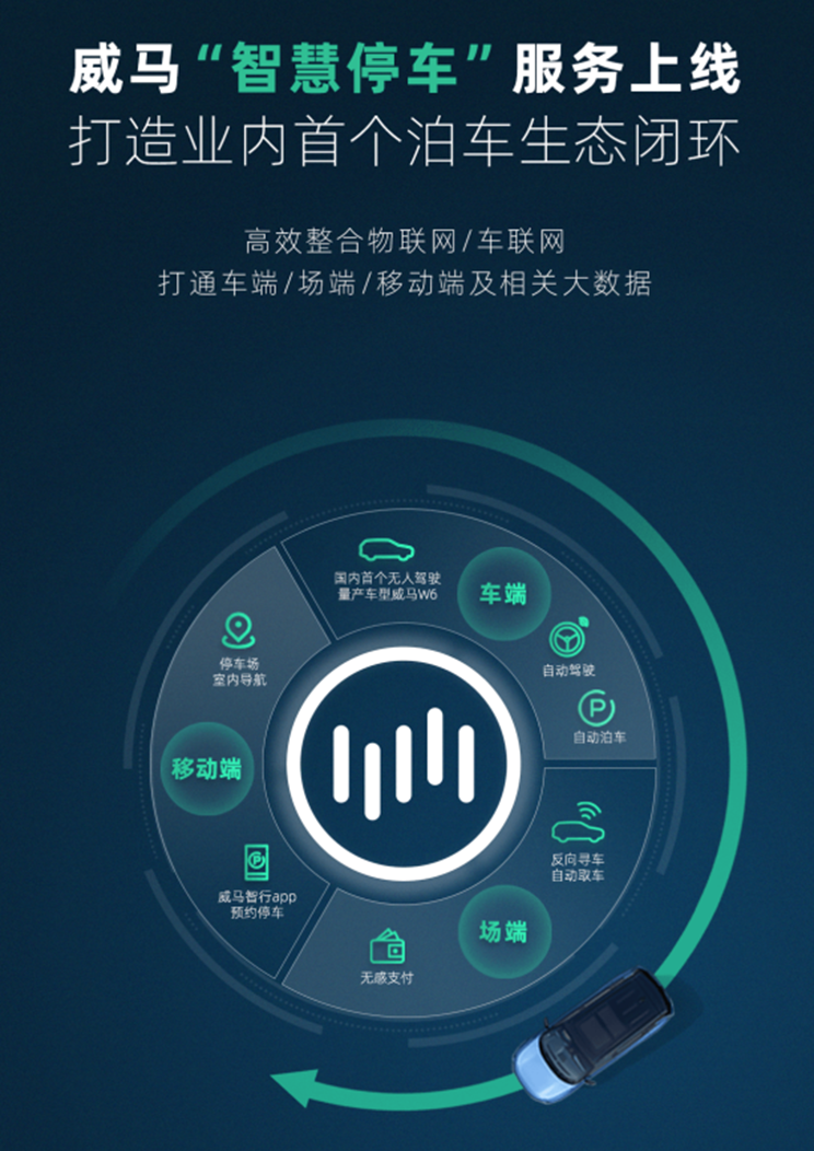 8 月 3 日,威马智行 APP“智慧停车”服务在 上线,标志着威马汽车于业内率先成功构建泊车生态闭环。“智慧停车”服务第一阶段现已开放,用户登录威马智行 APP ,即可享受覆盖全国 100 余座城市、超 70,000 个停车场库、超 10,000,000 个停车位的“空、忙、满”状态、停车费等信息免费查询服务,为威马 10 万 + 车主提供差异化用户体验。