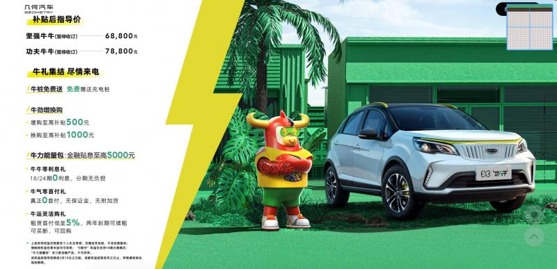8 月 4 日,几何汽车宣布,其旗下几何 EX3 功夫牛因电池、芯片等原材料供应不足的原因,已经于 8 月起正式停止接单,对于已经签定购车合同的用户,几何汽车将保证现有定车用户的购车权益。