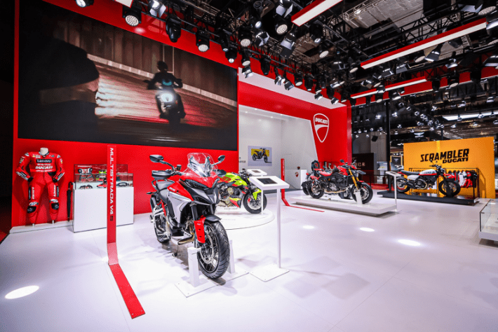限量版车型与新款车型一同亮相是杜卡迪展台的特点,包括源自杜卡迪与 Poltrona Frau 合作的 XDiavel Nera,以及旨在充分体验赛道骑行热情的 Panigale V4 SP2。就在上个月刚刚发布、专为越野拉力而设计的全新 DesertX 也是本届展会杜卡迪展台的亮点。