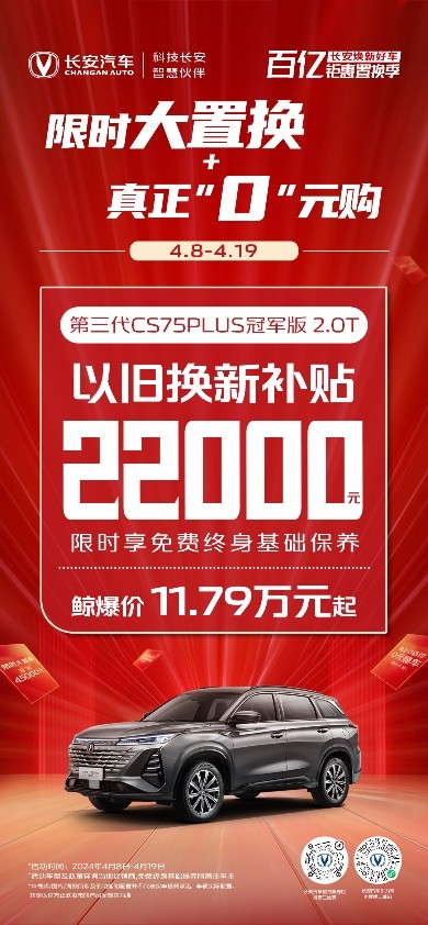此外,长安第三代CS75PLUS冠军版新车上市伊始,就推出了丰厚的购车权益,不仅终端给到了12000元的优惠,还有10000元的置换补贴,瞬间将最低购车门槛再拉低至11万多,以极卷的价格让利用户。