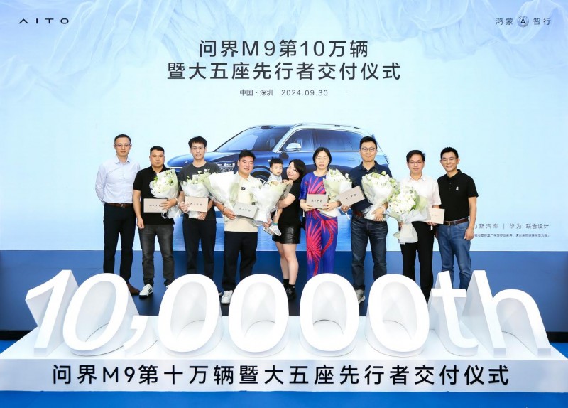 金秋九月,问界M9迎来新品加持,全新五座版车型以更少的座位数,为高端用户带来更大的奢侈感、松弛感,为消费者提供更优的购车选择。9月30日,问界M9第10万辆暨大五座先行者交付仪式在深圳隆重举行,多位问界M9大五座准车主受邀出席,现场感受这款“世界级好车”的产品魅力。华为终端智选车业务部总裁汪严旻、赛力斯汽车总裁何利扬莅临现场,共同见证了这一里程碑时刻,并为到场的车主交付了新车钥匙。