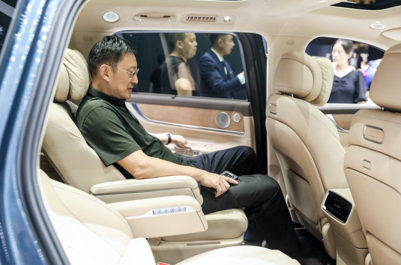 源于问界M9自身的风格和定位,我们还特别关注了用户人群的特点。总体来看,问界M9的用户群体比较成熟、稳重,具有高知的气质。现场有一位从事金融管理行业的黄先生给我留下了较深的印象,他属于换购人群,想把正在开的奔驰GLC换成国产豪华SUV。最开始心仪理想L9,但在朋友的强烈安利下专程来体验问界M9。试驾后他表示,相比理想L9,问界M9的智舱、智驾以及空间设计更有优势,自己已经下定问界M9增程Ultra五座版,还升级了22 英寸双十辐运动轮毂、电动踏板、电动拖车钩等配置,期待能早日提车。