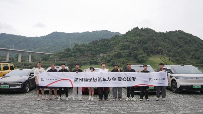 但是今年,建哥他们还是组织了10辆车,还得到了当地极氪门店的大力支持。车队穿行在永嘉各大考点周边。参与感,是大家最在意的。